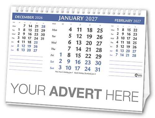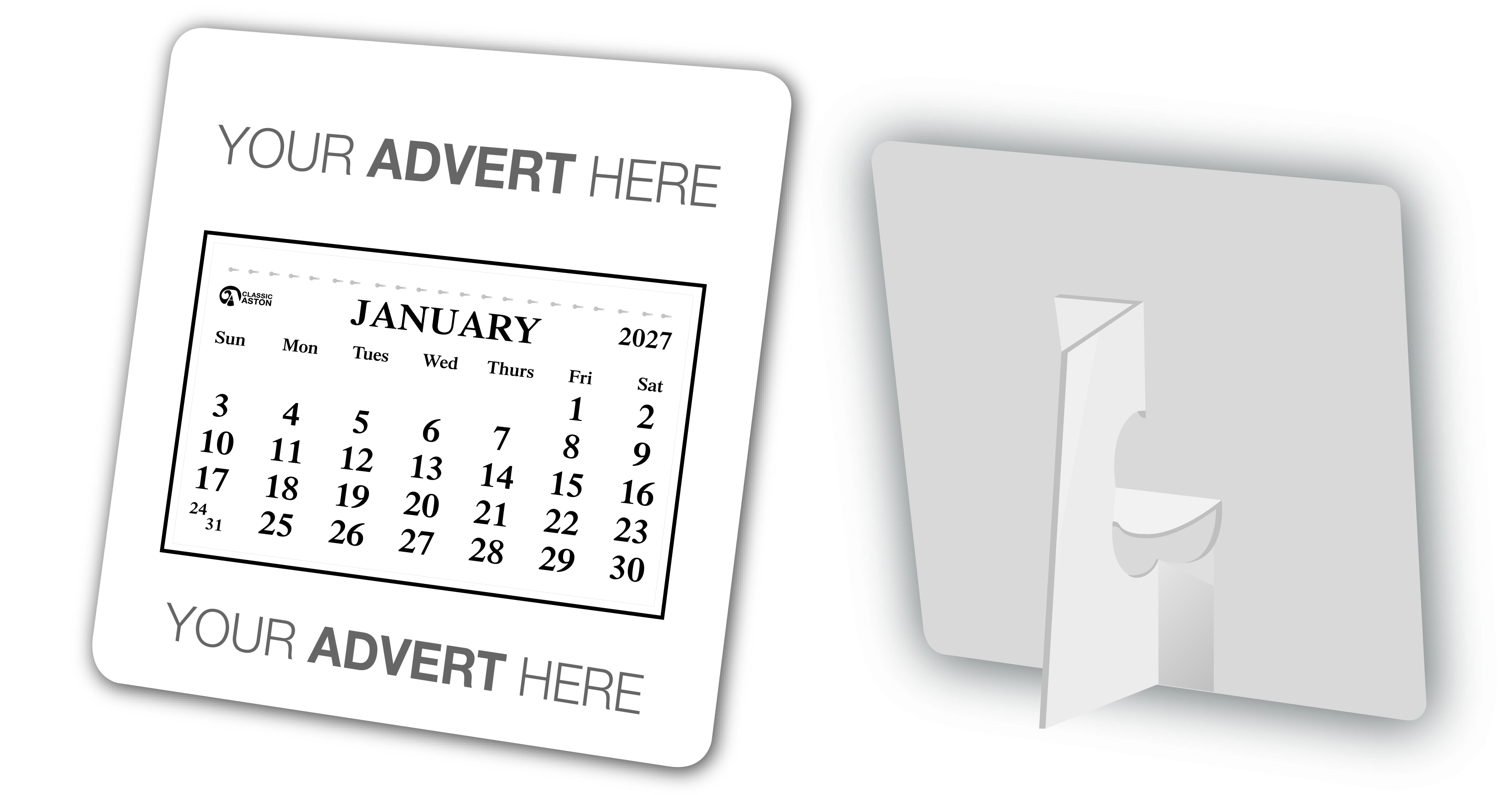 Cal 760 and 774 available with the advert printed in 1, 2, 3 or 4 colours on white, cream or grey boards